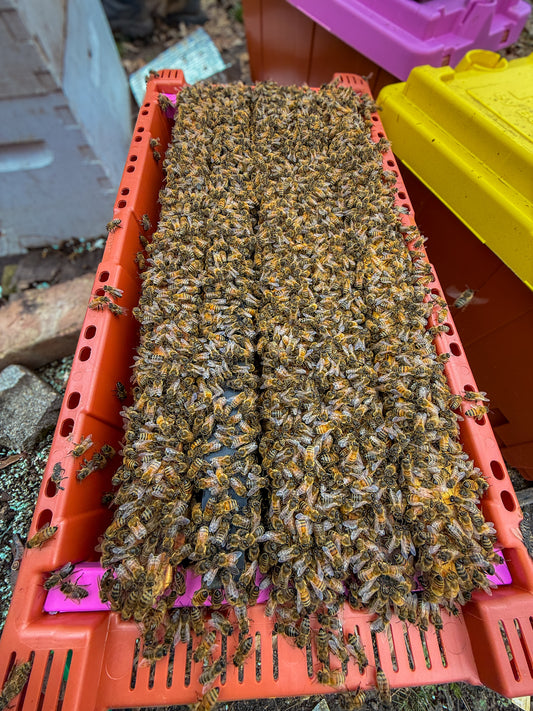 Each nuc comes safely secured in a ProNuc box with added ventilation to keep your bees comfortable during transport. To ensure a smooth ride, we recommend bringing something to secure the box in your vehicle so it won’t tip over. Avoid placing the nuc in an enclosed trunk without airflow, as proper ventilation is essential for the bees’ safety.