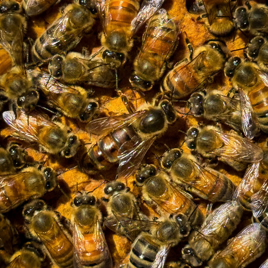Our overwintered nucs are fully established small colonies with healthy brood, food stores, and a strong queen ready to thrive in your hive.